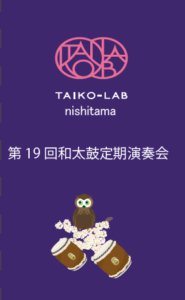 タイコラボ西多摩 2026年1月10日 2026.3月15日(日)開催の第19回和太鼓定期演奏会、入場券を販売開始します。こちらは会員様限定販売となります。 尚、一般販売は当日券のみとなり、前売券は予定しておりません。ご了承下さい。 あなたにお勧めの関連記事舞台演奏者募集! 2026年3月に開催(予定)のイベントに舞台で演奏して下さる方を募集します 演奏曲「縁」を思いっきり打ち込みませんか! 詳細はワークシ […]和太鼓用品&バチ 値上げのお知らせ この度、度重なる原材料高騰及び物流コストの値上げにより、2024年6月1日より値上げとなる連絡が入りましたのでお知らせ致します。 当教室 […]和立の会 文化祭出演に向け練習始動 10周年を記念して作曲して頂いた曲「和立」、来る10月の市民文化祭にて演奏するための練習を開始。 2か月間の自主練習後、メンバーが集まり […]会員各位 緊急のご連絡 この度、運営スタッフが新型コロナウィルスに感染してしまいましたため、 来る8月7日(日)、9日(火)、10日(水)のレッスンを休講させて […]振替レッスンWS開催しました 9月30日に振替レッスンワークショップを初めて開催しました。 今回のテーマは「横打ちを楽しむ […]2025.和太鼓定期演奏会のブルーレイディスク完成 お待たせしました! 先月開催された第18回和太鼓定期演奏会のブルーレイディスクが仕上がりましたのでお知らせします。3月26日立川会場のレ […] 共有:クリックして Twitter で共有 (新しいウィンドウで開きます)Facebook で共有するにはクリックしてください (新しいウィンドウで開きます) ← ご挨拶 真剣な眼差しが光った3回シリーズレッスン! →